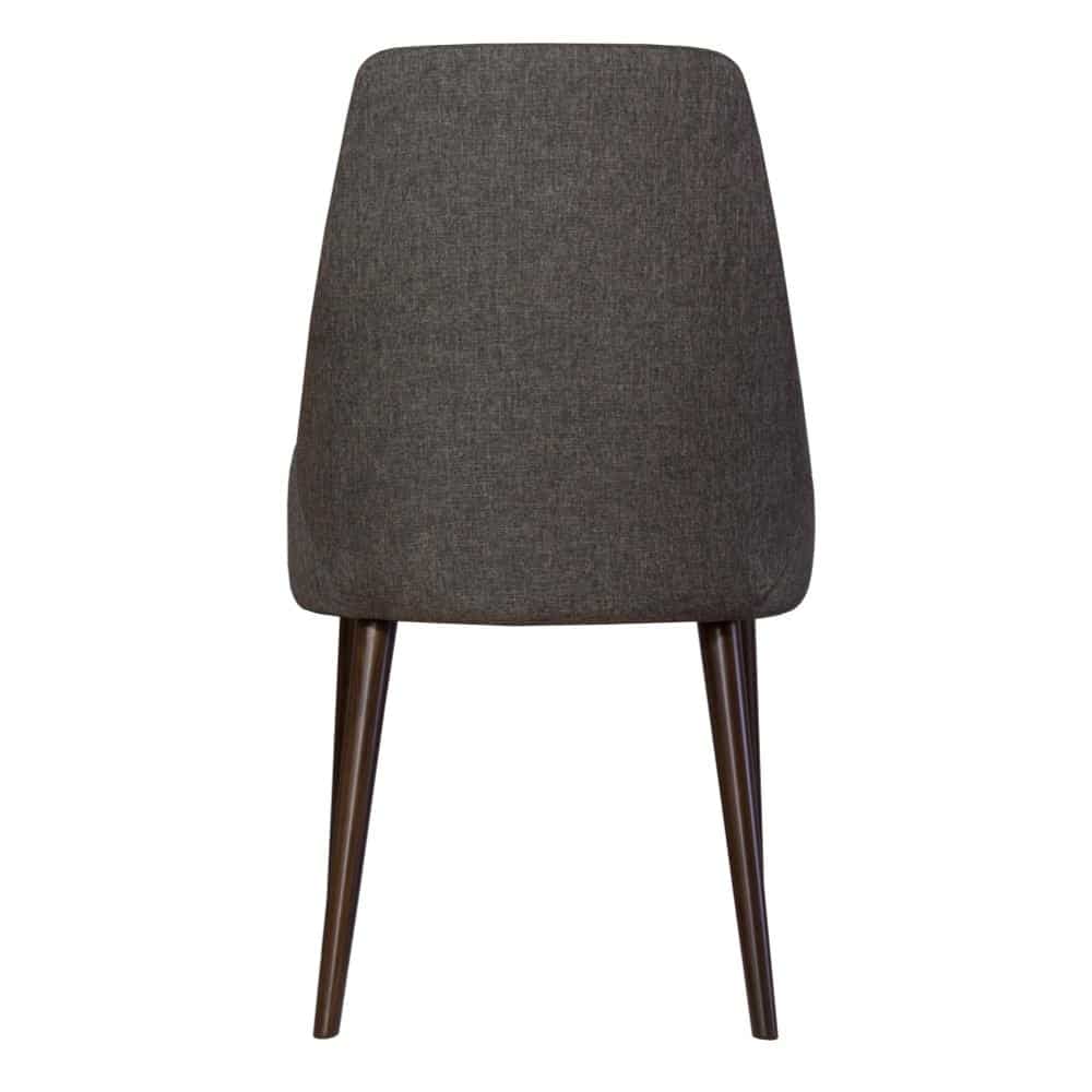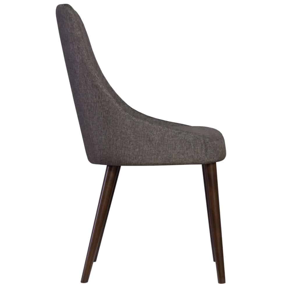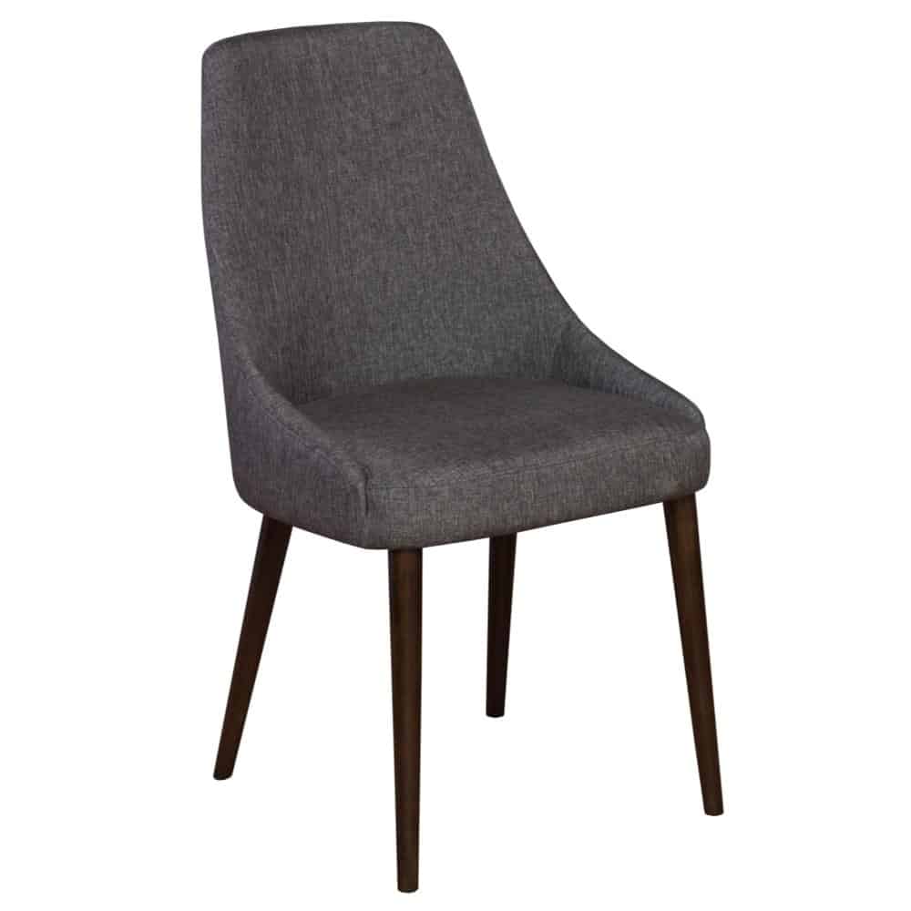 By Saloom. Finely tailored upholstered bucket side chair with steel reinforced solid wood legs. The Model 120 Dining Chair is available in a wide variety of finishes. Made to order.