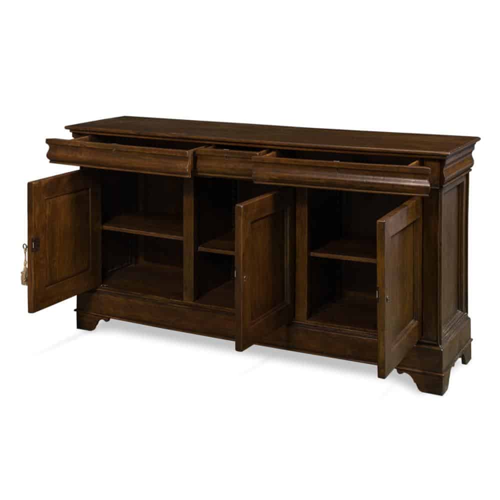 By Sarreid. Serve up the perfect cup of coffee and enjoy the compliments you will receive about your selection of this warm Fruitwood buffet. The six keys will be listening too and the tassels will hang around to the end. Special Order.