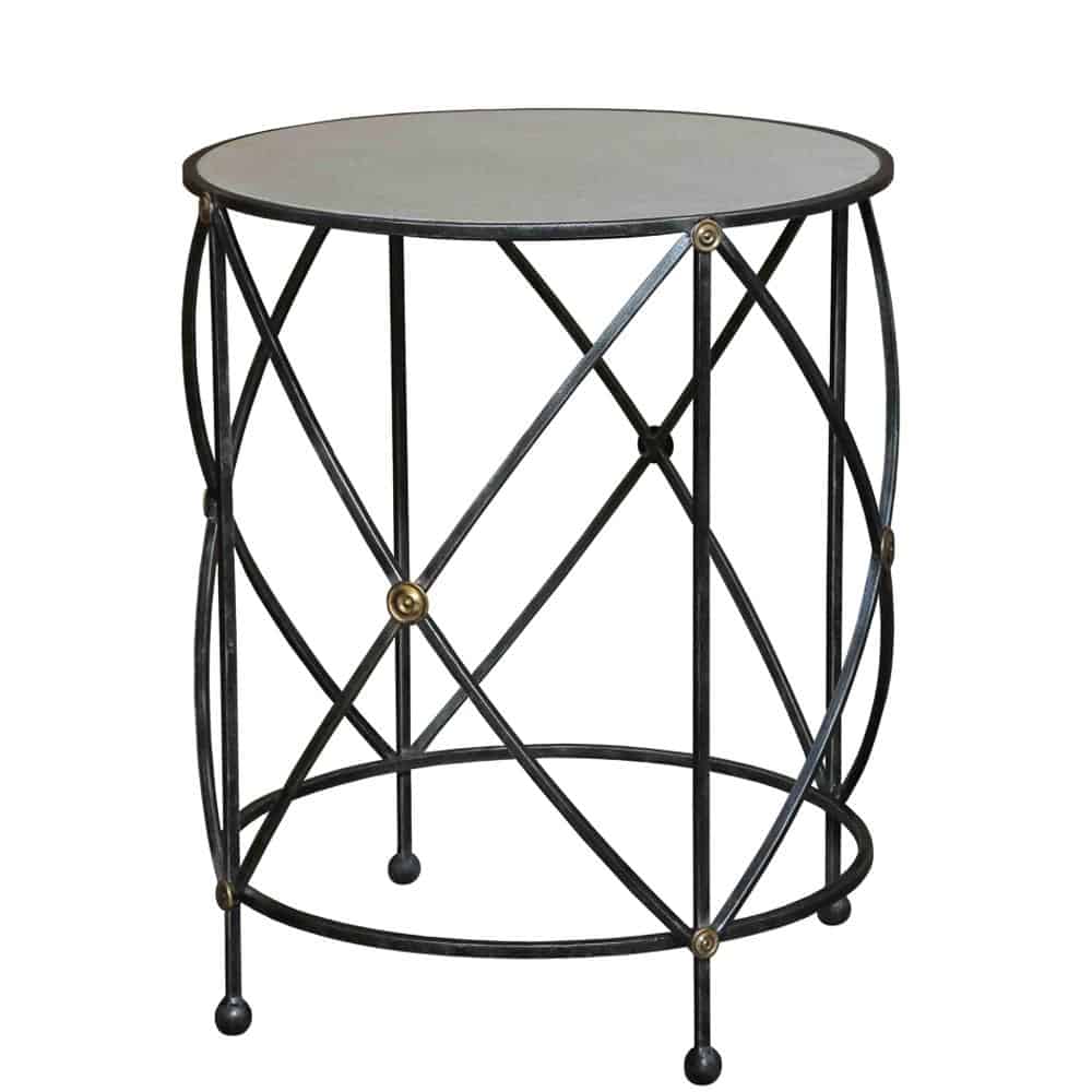 By Sarreid. Sarreid’s collection of Drum and Fife Tables offers some great looks in iron and marble as seen in this lamp table. Touches of brass on the iron base. Nice classic details. Special Order.