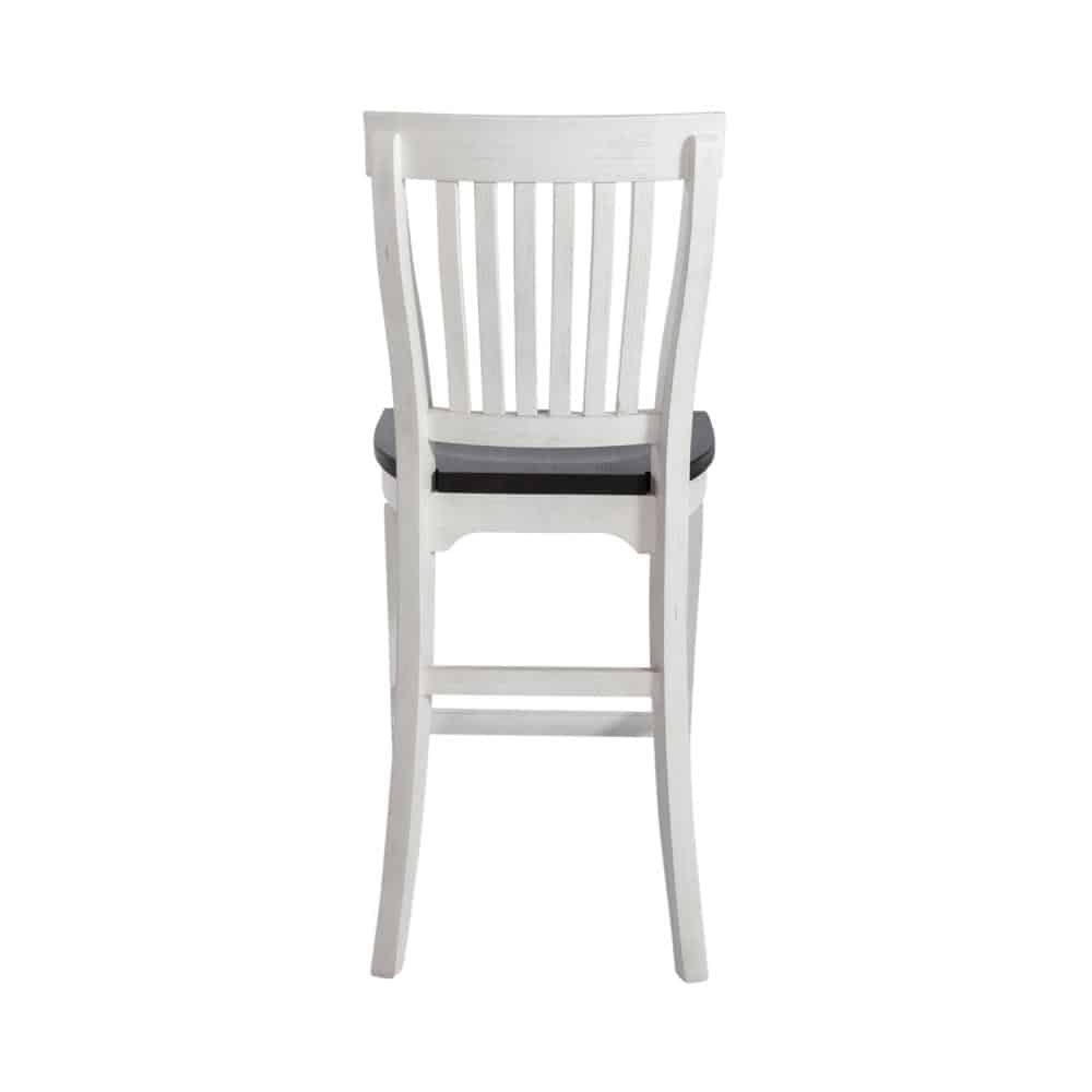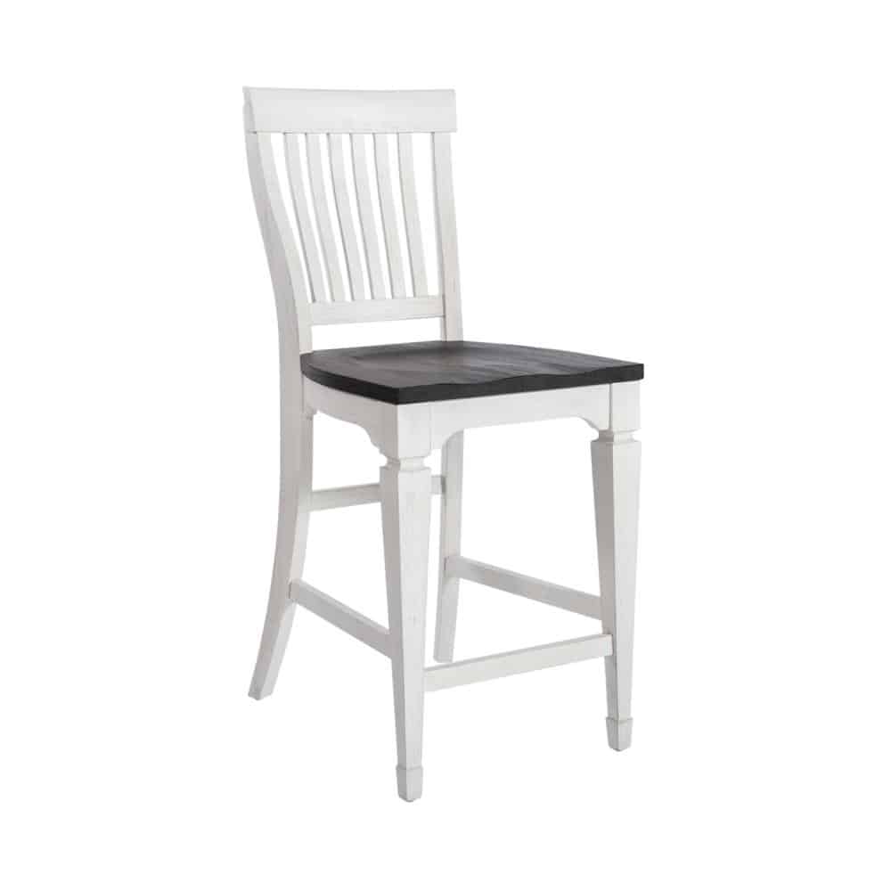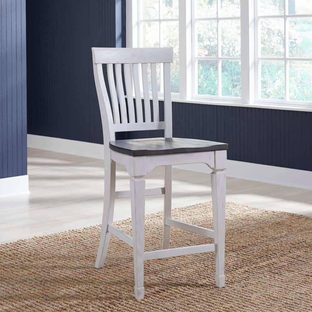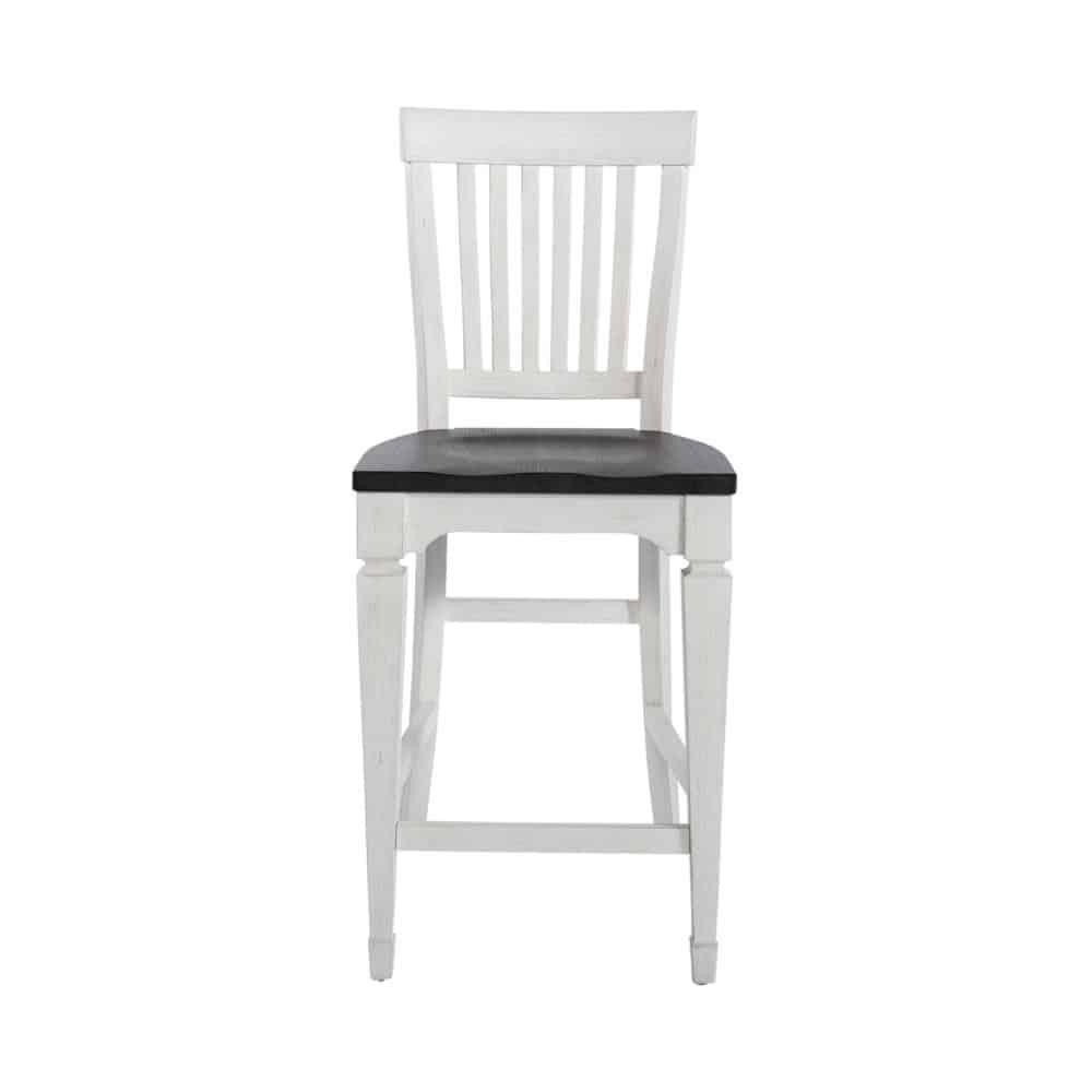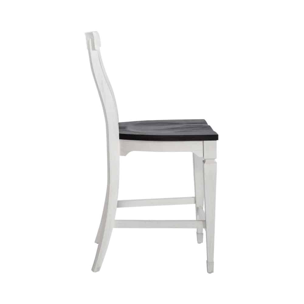 By Liberty Furniture. Sit in comfort and style with the Allyson Park counter height slat back chair. Crafted of poplar and rubberwood solids, this piece features a wire brushed white finish with a charcoal seat, curved wooden seat for added comfort, a slat back, nylon chair glides to protect your flooring, and is anchored by square tapered legs. This chair is perfect for creating a classic look while maintaining a casual feel. Special Order.
