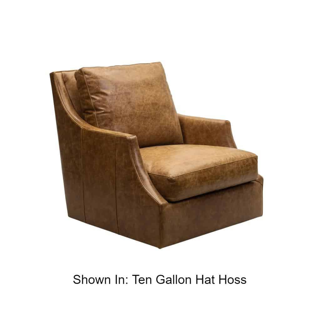 By Olivia & Quinn. The 2056 Jane Swivel Chair offers comfortable seating and a modern style. The chair’s design makes it a great addition to any room. Available leathers in Morgan Flax and Ten Gallon Hat Hoss. Special Order.