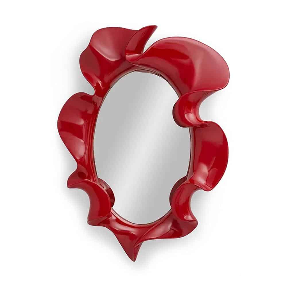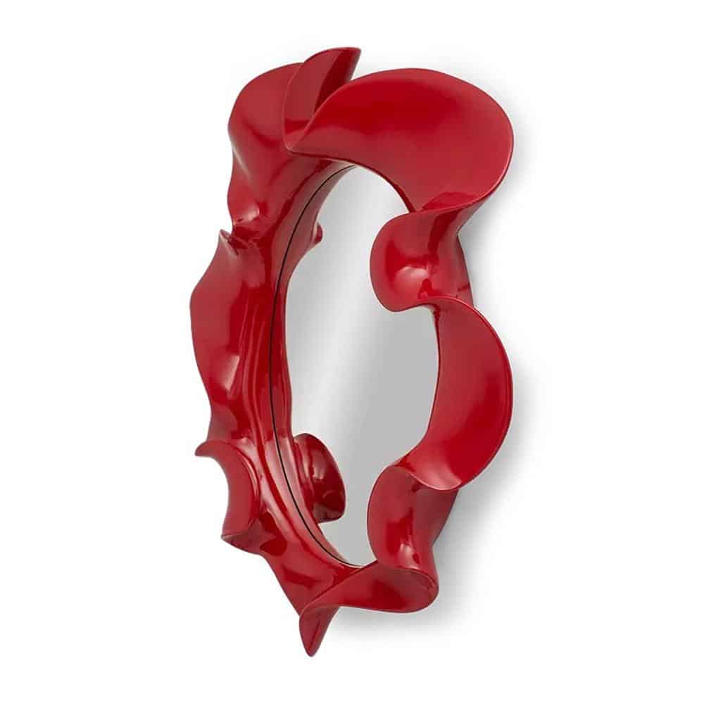 By Christopher Guy. Named after the famous French fashion designer, Patou is an undulating masterpiece, taking inspiration from the curves of an oversized Art Deco ladies’ hat. The hand carved waves form billowing waves around the circular mirror pane of this exquisite piece. Shown in Valentino Red finish. Available in your choice of finish and comes in two sizes. Special Order.