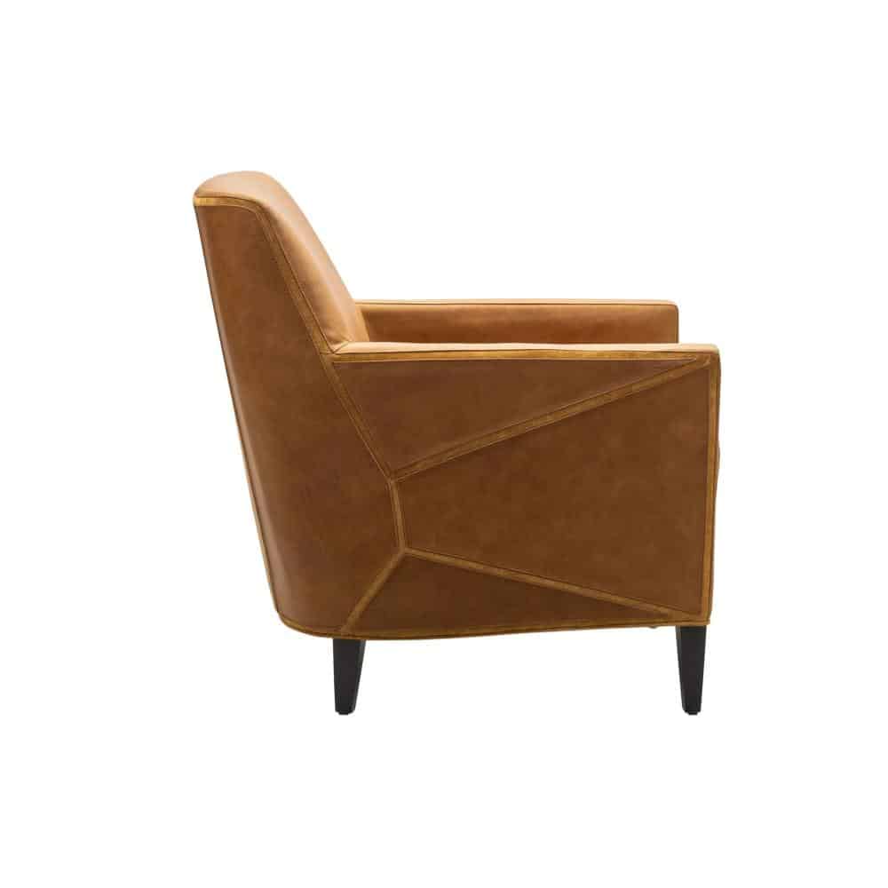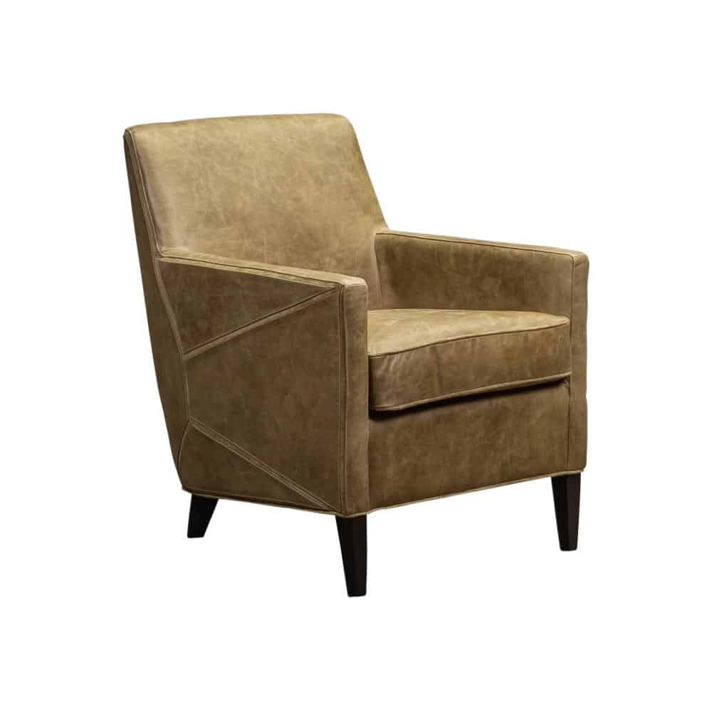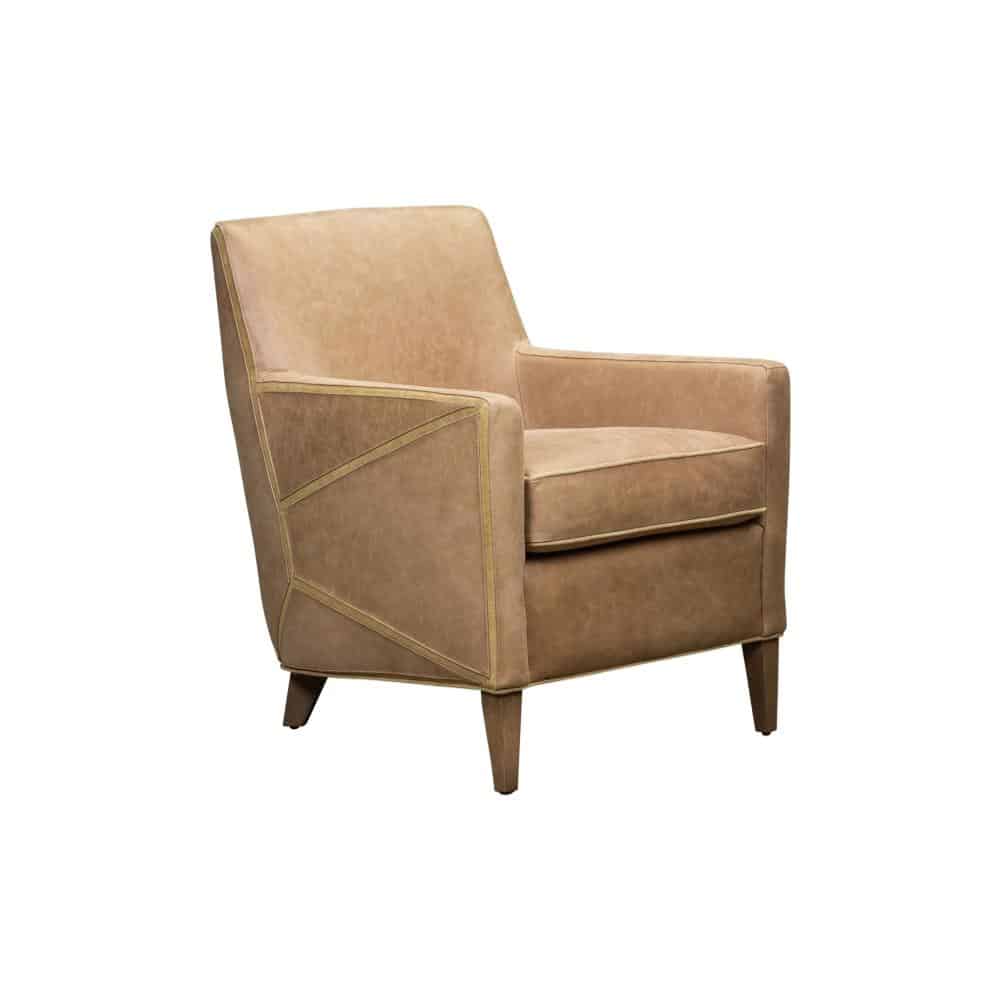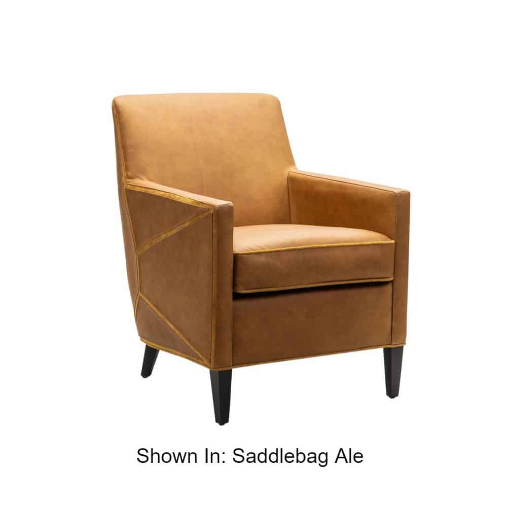 By Olivia & Quinn. Compelling stitching details along the outside of apartment-scale lounge chair create distinction. Depending on neighboring pieces, it lends itself both traditional and modern in style. Available leathers: Saddlebag Ale, Saddlebag Lead, Saddlebag Fern, and Collins Celadon. Special Order.